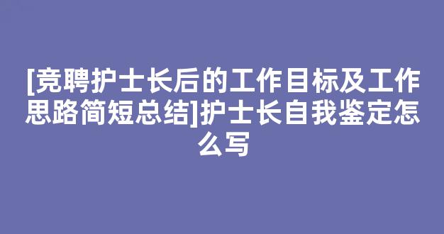 [竞聘护士长后的工作目标及工作思路简短总结]护士长自我鉴定怎么写参考范文如下: