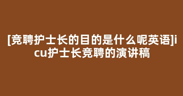 [竞聘护士长的目的是什么呢英语]icu护士长竞聘的演讲稿参考范文如下: