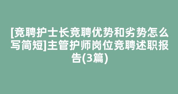 [竞聘护士长竞聘优势和劣势怎么写简短]主管护师岗位竞聘述职报告(3篇)参考范文如下:
