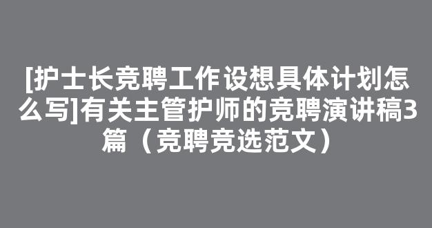 [护士长竞聘工作设想具体计划怎么写]有关主管护师的竞聘演讲稿3篇(竞聘竞选范文)参考范文如下: