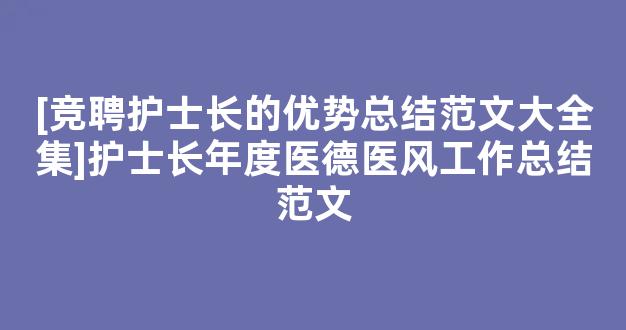 [竞聘护士长的优势总结范文大全集]护士长年度医德医风工作总结范文参考范文如下: