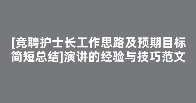 [竞聘护士长工作思路及预期目标简短总结]演讲的经验与技巧范文参考范文如下: