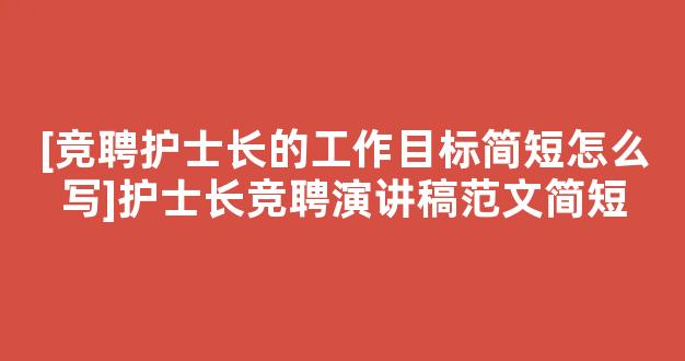 [竞聘护士长的工作目标简短怎么写]护士长竞聘演讲稿范文简短参考范文如下: