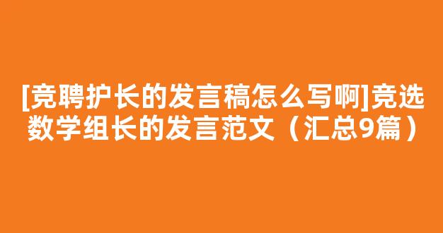 [竞聘护长的发言稿怎么写啊]竞选数学组长的发言范文(汇总9篇)参考范文如下: