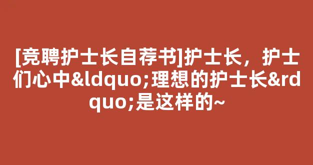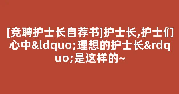 [竞聘护士长自荐书]护士长,护士们心中“理想的护士长”是这样的~参考范文如下: