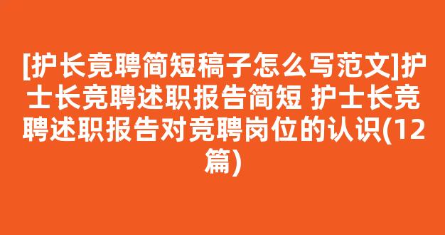 [护长竟聘简短稿子怎么写范文]护士长竞聘述职报告简短 护士长竞聘述职报告对竞聘岗位的认识(12篇)参考范文如下:
