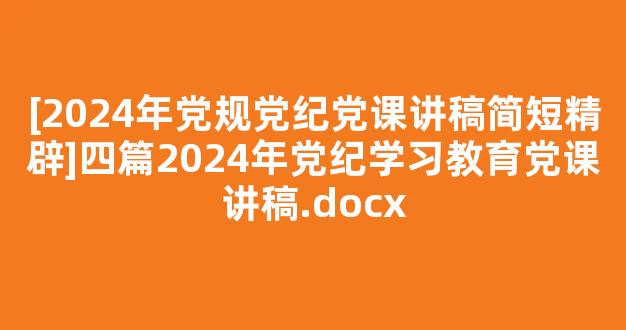 [2024年党规党纪党课讲稿简短精辟]四篇2024年党纪学习教育党课讲稿.docx怎么写技巧如下: