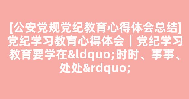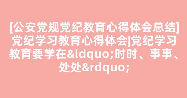 [公安党规党纪教育心得体会总结]党纪学习教育心得体会|党纪学习教育要学在“时时、事事、处处”参考范文如下:
