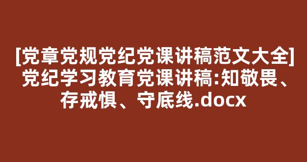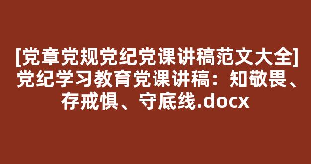 [党章党规党纪党课讲稿范文大全]党纪学习教育党课讲稿:知敬畏、存戒惧、守底线.docx怎么写技巧如下: