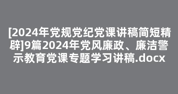 [2024年党规党纪党课讲稿简短精辟]9篇2024年党风廉政、廉洁警示教育党课专题学习讲稿.docx怎么写技巧如下: