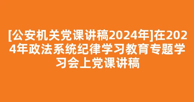 [公安机关党课讲稿2024年]在2024年政法系统纪律学习教育专题学习会上党课讲稿参考范文如下: