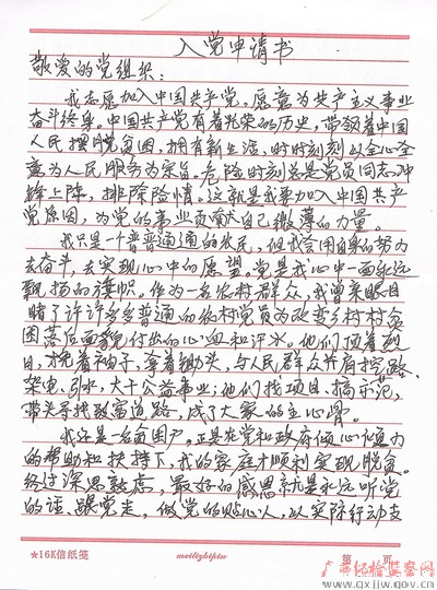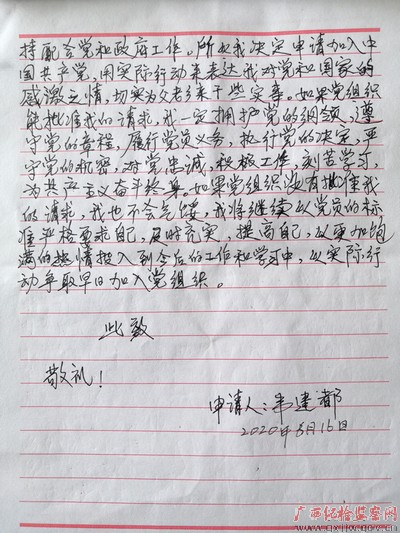 韦建都手写的入党申请书