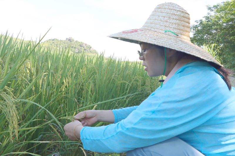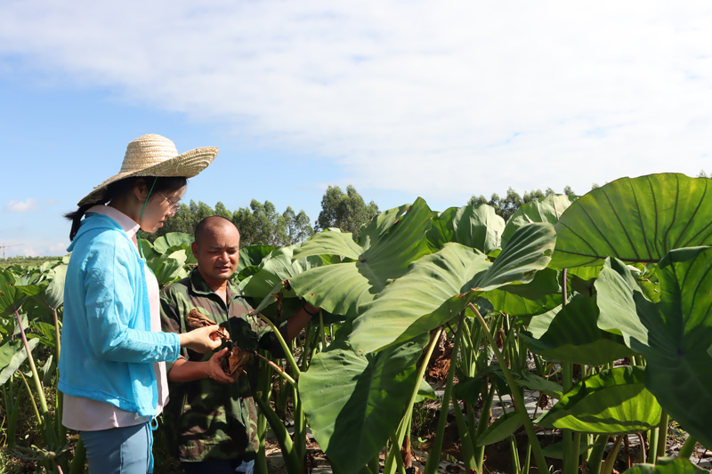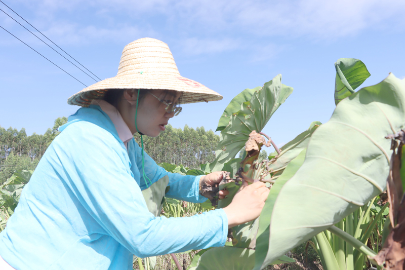 覃雁瑜还不时进村查看农作物的生长情况,在水稻田间、芋头地里、果园山上……都随时可以看到她的身影,村民在农业生产遇到问题也会主动向她请教。