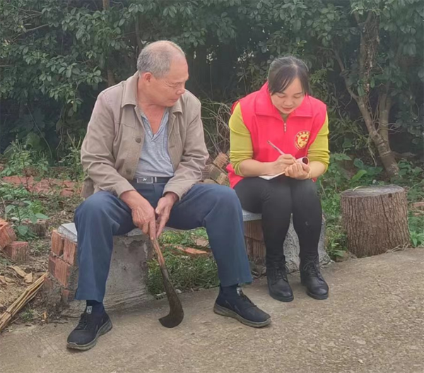 “小覃这个妹爱笑,有礼貌,态度好。经常来做好事,像调解纠纷、收集群众意见、上门宣传党和政府的方针政策等等,这些工作都真正做到了我们群众心坎里,很感谢她。”村民廖鸿斌提起覃雁瑜满脸笑容。