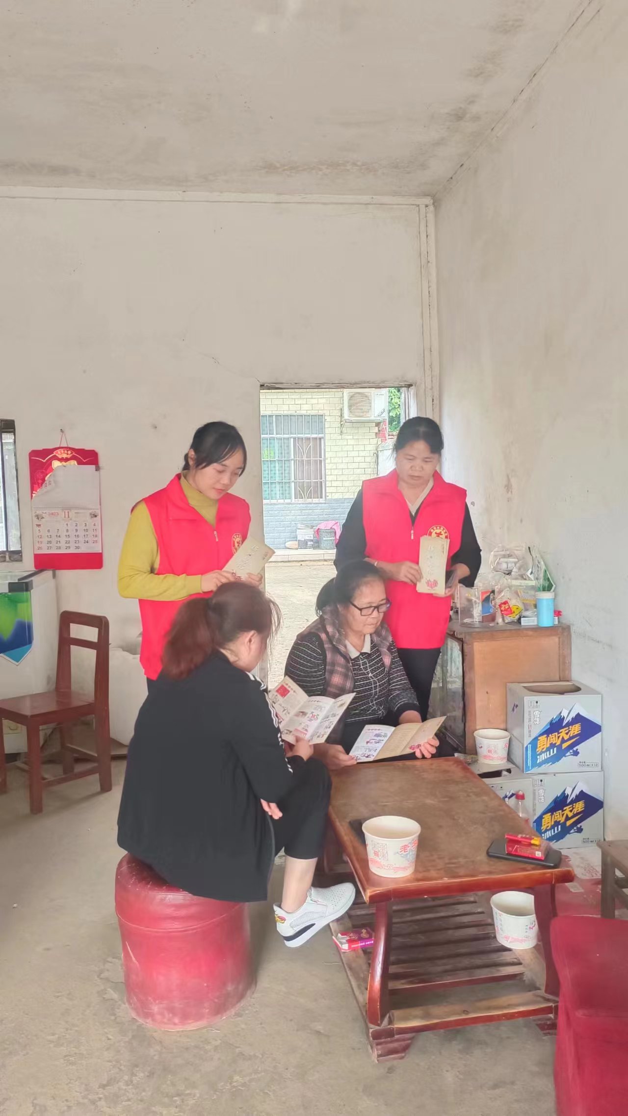 ▲覃雁瑜入户宣传禁毒、安全用电知识