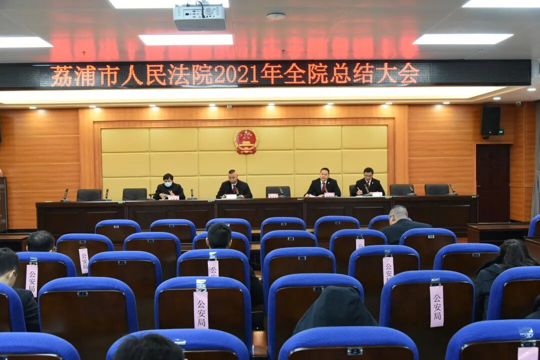 2022年1月10日,荔浦市人民 法院召开2021年度工作总结大会,由各部门负责人向院党组和全体干警汇报本部门2021年的工作情况。党组书记、院长粟开俭和其他院党组成员、全体干警参加总结大会。党组成员、政治部主任邓晓辉主持会议。