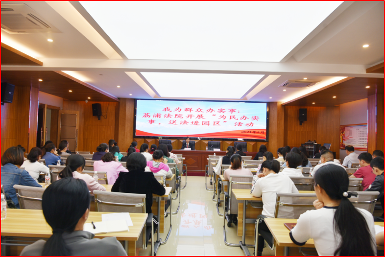 积极开展为群众办实事活动,送法进园区、进企业、进校园,不断拉近法庭与群众的距离,提升群众的安全感和满意度。