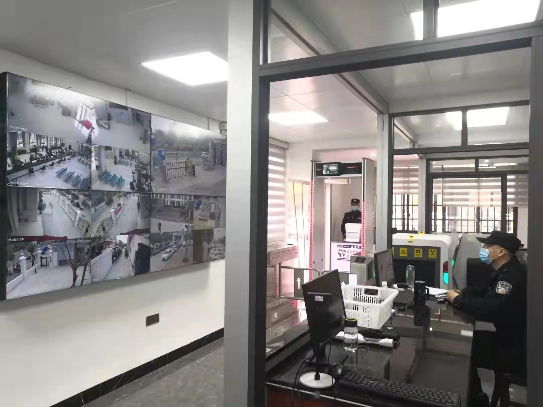 新的安检通道内设置安检门、X光机、手持安检仪等设备,每个工作日都有三名司法警察进行安检工作,做到逢进必检、净身入院,除身份证识别和X光机检验随身携带物品外,还有一名女警手持安检仪进行搜身检查,并严格按照规章制度办事。全院设置了近百个高清摄像头,二十四小时专人看守,做到院内无死角。同时备勤法警实行全天候巡逻,就突发事件第一时间处置。