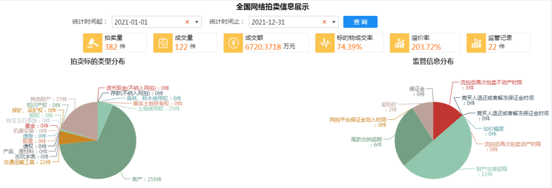 共在淘宝网展示标的物382次,成交122件,成交金额6720.3718万元,标的物成交率为74.39%,溢价率为203.72%,案拍比全市法院排名第一,有效提高了财产变现率。