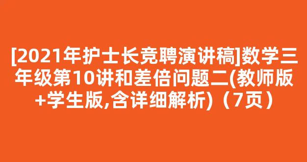 以下是御用文案网提供整理的[2021年护士长竞聘演讲稿]数学三年级第10讲和差倍问题二(教师版+学生版,含详细解析)(7页)范文,[2021年护士长竞聘演讲稿]数学三年级第10讲和差倍问题二(教师版+学生版,含详细解析)(7页)怎么写以及文章代写可加微信13258028938