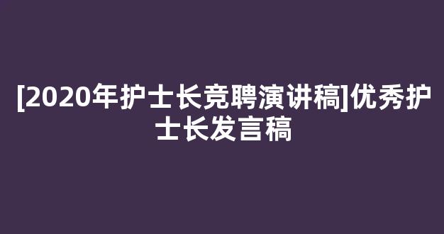 在社会发展不断提速的今天,能够利用到发言稿的场合越来越多,发言稿具有逻辑严密,态度明确,观点鲜明的特点。写起发言稿来就毫无头绪?以下是小编精心整理的优秀护士长发言稿,供大家参考借鉴,希望可以帮助到有需要的朋友。