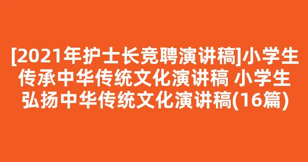 以下是御用文案网提供整理的[2021年护士长竞聘演讲稿]小学生传承中华传统文化演讲稿 小学生弘扬中华传统文化演讲稿(16篇)范文,[2021年护士长竞聘演讲稿]小学生传承中华传统文化演讲稿 小学生弘扬中华传统文化演讲稿(16篇)怎么写以及文章代写可加微信13258028938