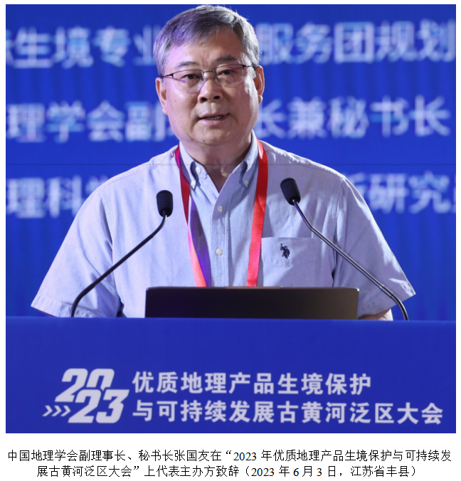 今天,非常高兴来到江苏丰县,参加2023年优质地理产品生境保护与可持续发展古黄河泛区大会。首先,请允许我代表中国地理学会,向这次大会的召开表示热烈祝贺!向各位嘉宾、各位领导和各位专家百忙中出席今天的大会表示衷心的感谢!也向为这次大会筹备工作付出辛勤劳动的中国地理学会地理大数据工作委员会的同志们,以及丰县及其有关部门的领导们表示诚挚的谢意!