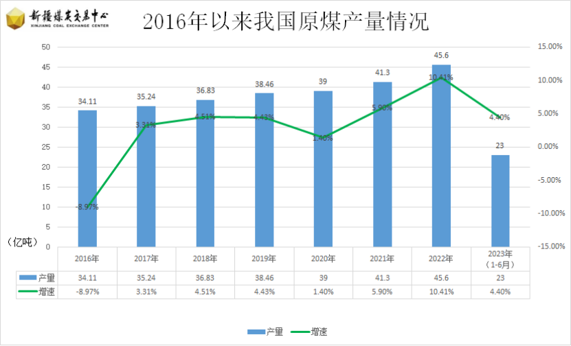 在系列保供稳价政策下,近年来我国煤炭产量显著增加,市场供应持续充足。数据显示,2023年6月份,中国原煤产量为39009.3万吨,同比增长2.5%;1-6月累计产量230053.6万吨,同比增长4.4%。总体来看,我国继续推进保供稳价政策,煤炭供应依然维持在高位水平,煤炭供需紧张的局面已经大为缓解。