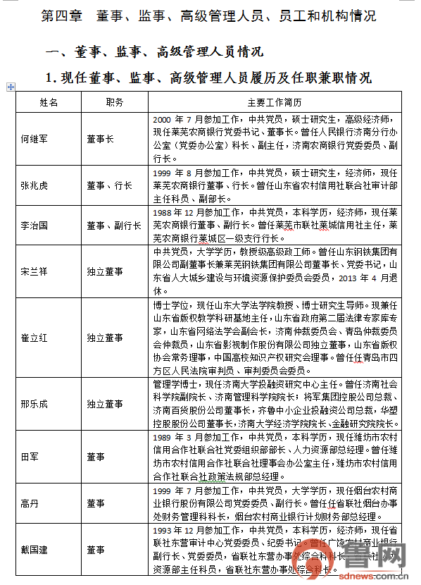 (3)董事会和监事会人员薪酬方面:经第五次股东大会审议通过了《莱芜农商银行董事会薪酬方案》《莱芜农商银行监事薪酬方案》,确定了董事会、监事会人员的薪酬,非执行董事仅支付相应的董事会费,非职工监事仅支付相应的监事会费。其中独立董事年董事会费8万元/人,一般非执行董事年董事会费4万元/人,股东监事和外部监事年监事会费4万元/人。