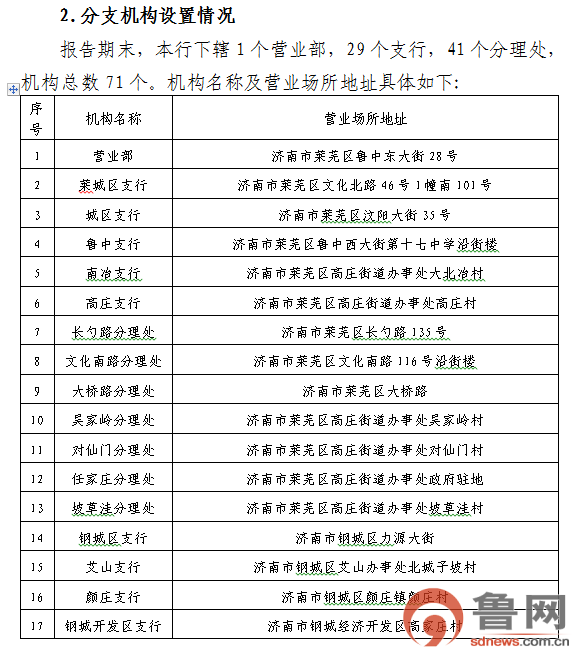 一、法定中文名称:山东莱芜农村商业银行股份有限公司