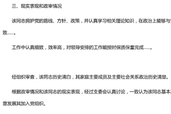 该同志于某某时间向党支部递交入党申请书,某某时间被确定为入党积极分子,某某时间被列为发展对象。培养教育期间,该同志能够认真学习党的基本知识,工作认真主动,积极参加社会实践,经