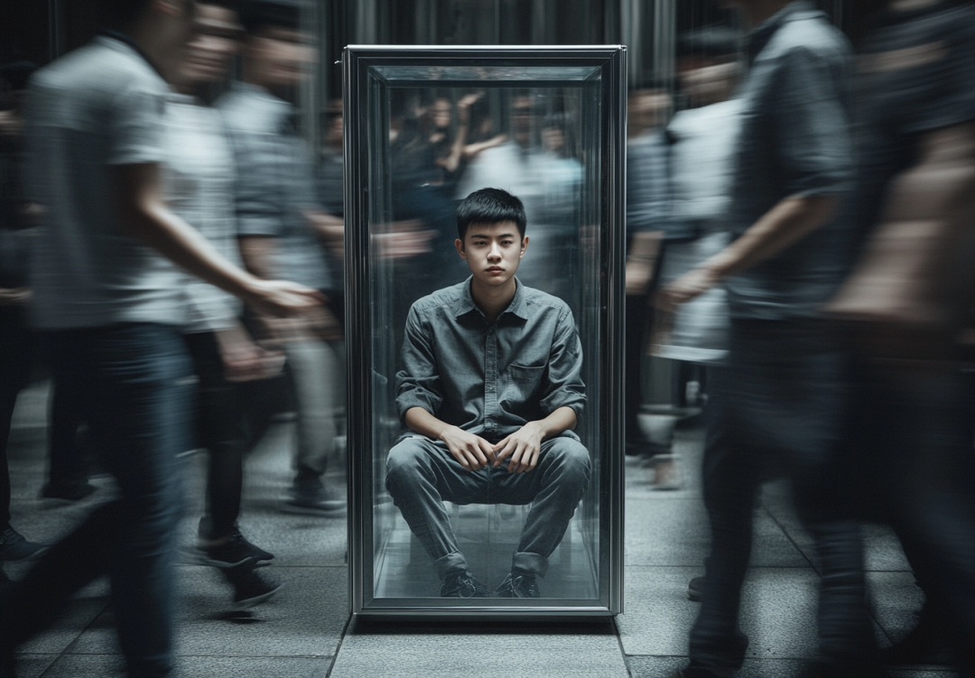 但在这个过程中,他的眼睛始终没有看向外在的世界。真实的世界常是斑驳的光影、含糊模糊的色调,他们自幼被训练习惯去看明晰、可达成的目标,来提升自我效能感。因而,年轻的眼睛里只有目标,也只有他自己。