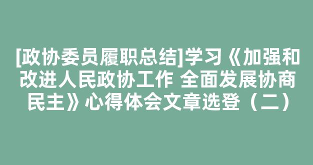 [政协委员履职总结]学习《加强和改进人民政协工作 全面发展协商民主》心得体会文章选登(二)参考范文如下: