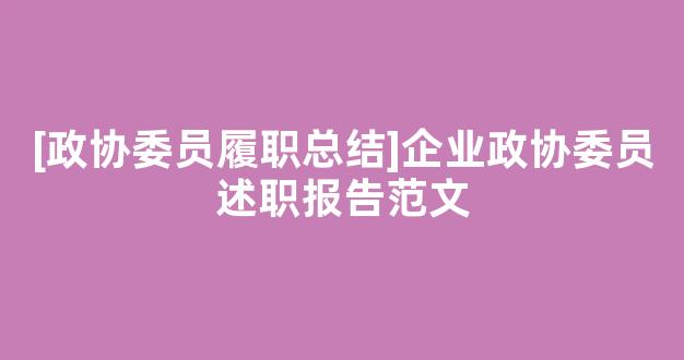 [政协委员履职总结]企业政协委员述职报告范文参考范文如下: