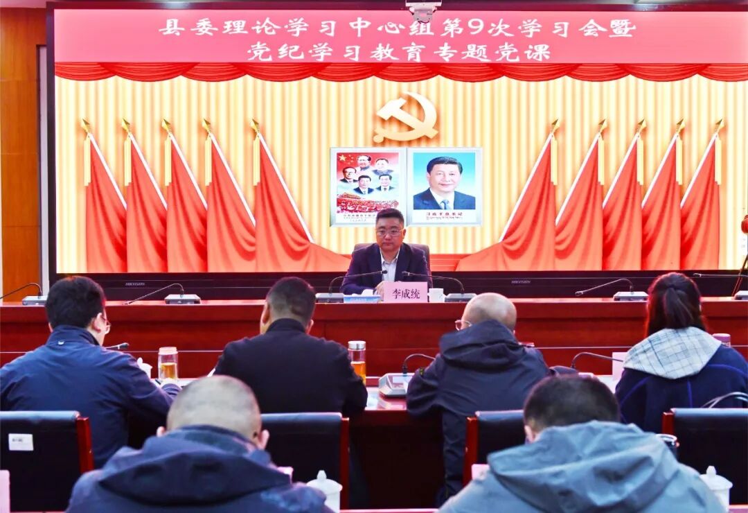 6月11日,县委理论学习中心组第9次学习会召开。县委书记李成统以《学条例立标尺 以铁纪树脊梁 学纪于常 知纪于责 明纪于心 守纪于行 为加快推进“一县一城四区”工作布局提供坚实纪律保障》为题作党纪学习教育专题党课报告。强调,要准确把握党纪学习教育的目标要求,认真学习领会新修订的《中国共产党纪律处分条例》,坚定不移推进全面从严治党,始终坚持严的基调不动摇,在一体推进“三不腐”上持续加压用力,以实际行动坚定拥护“两个确立”、坚决做到“两个维护”。