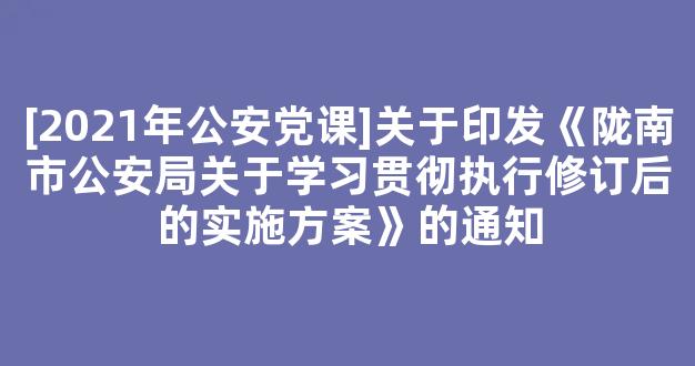 [2021年公安党课]关于印发《陇南市公安局关于学习贯彻执行修订后的实施方案》的通知
