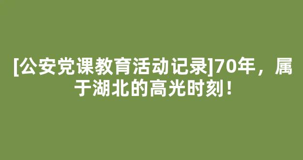 [公安党课教育活动记录]70年,属于湖北的高光时刻!