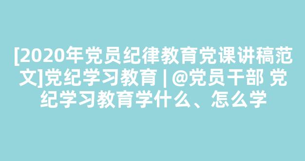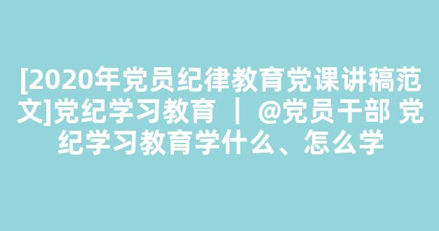 [2020年党员纪律教育党课讲稿范文]党纪学习教育 | @党员干部 党纪学习教育学什么、怎么学参考范文如下:
