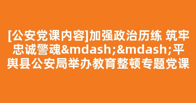 [公安党课内容]加强政治历练 筑牢忠诚警魂——平舆县公安局举办教育整顿专题党课