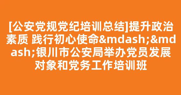 [公安党规党纪培训总结]提升政治素质 践行初心使命——银川市公安局举办党员发展对象和党务工作培训班怎么写技巧如下: