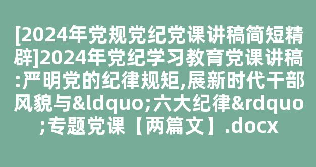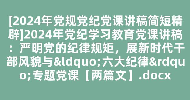 [2024年党规党纪党课讲稿简短精辟]2024年党纪学习教育党课讲稿:严明党的纪律规矩,展新时代干部风貌与“六大纪律”专题党课【两篇文】.docx