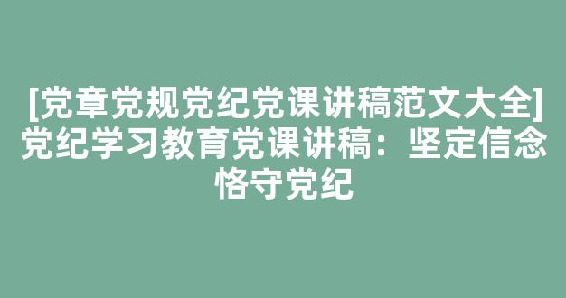 [党章党规党纪党课讲稿范文大全]党纪学习教育党课讲稿:坚定信念恪守党纪