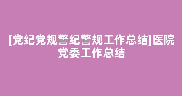[党纪党规警纪警规工作总结]医院党委工作总结