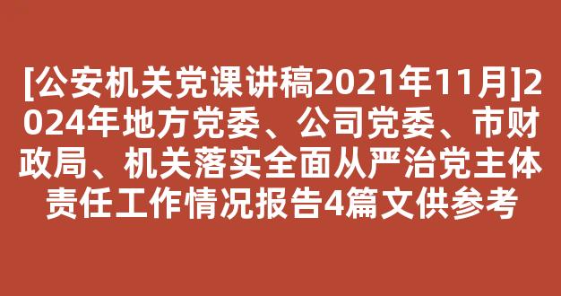 [公安机关党课讲稿2021年11月]2024年地方党委、公司党委、市财政局、机关落实全面从严治党主体责任工作情况报告4篇文供参考