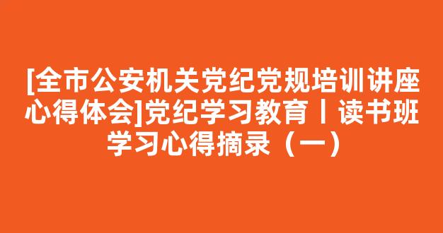 [全市公安机关党纪党规培训讲座心得体会]党纪学习教育丨读书班学习心得摘录(一)