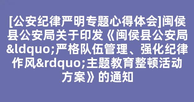 [公安纪律严明专题心得体会]闽侯县公安局关于印发《闽侯县公安局“严格队伍管理、强化纪律作风”主题教育整顿活动方案》的通知