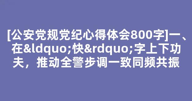 [公安党规党纪心得体会800字]一、在“快”字上下功夫,推动全警步调一致同频共振