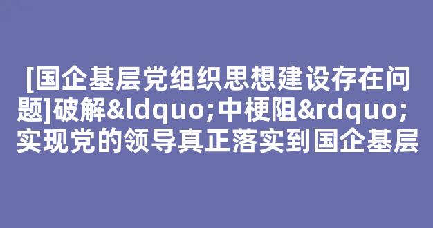 [国企基层党组织思想建设存在问题]破解“中梗阻” 实现党的领导真正落实到国企基层