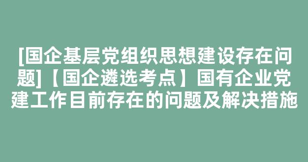 [国企基层党组织思想建设存在问题]【国企遴选考点】国有企业党建工作目前存在的问题及解决措施