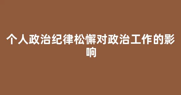 总之,个人政治纪律松懈对政治工作有着深远的影响,既会带来思想的混乱,也会损害党组织的执行力与凝聚力,甚至滋生腐败现象。每一位党员干部都应时刻保持警觉,以高度的政治责任感为党和国家的事业保驾护航。